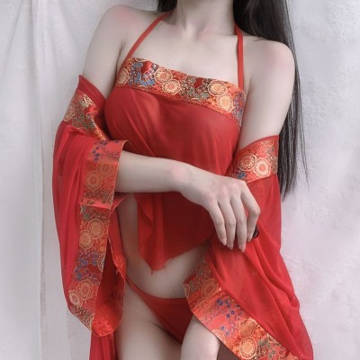 Chinese New Year Red Lingerie Set - Exotic Dance Costume with Traditional Style, Couple's Bedroom Role Play Outfit (Cheongsam Inspired)