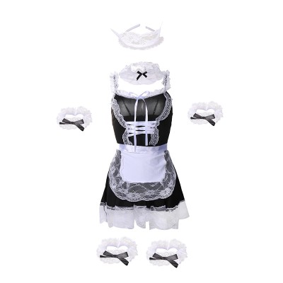 French Maid Lingerie Set - Sexy Role Play Costume with Apron & Headband, Adult BDSM Servant Outfit for Women (Black/White)
